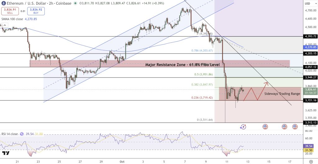 На технічному фронті, Прогнозування ціни Ethereum Здається, що Bearish, оскільки BTC консолідується в стороні від 3720 до 3860 доларів, що тримає вище 23,6% рівня відновлення Fibonacci на рівні 3719 доларів, що виступає як короткострокова підтримка.