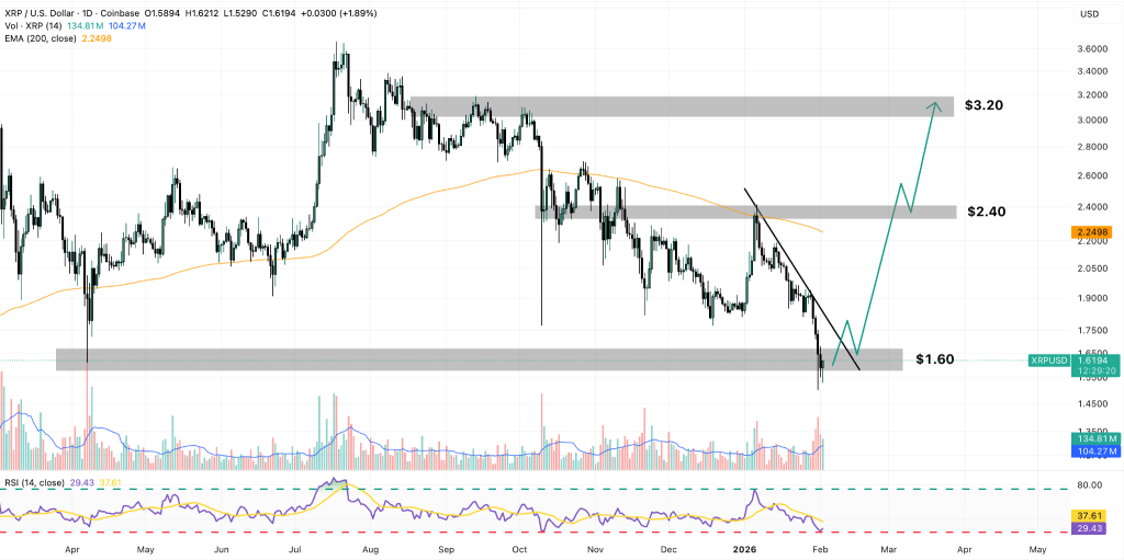 Однак покупці почали наближатися до рівня $1,60, який історично виступав як сильна підтримка. Ще в квітні XRP відскочив від цієї зони і в наступні місяці піднявся до $3,60.