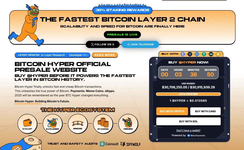 Оскільки активність біткойнів зростає, а попит на ефективні програми на основі BTC зростає, Bitcoin Hyper виділяється як міст, що об’єднує дві найбільші екосистеми криптовалюти. Якби біткойн створив основу, Біткойн Гіпер може знову зробити його швидким, гнучким і веселим.