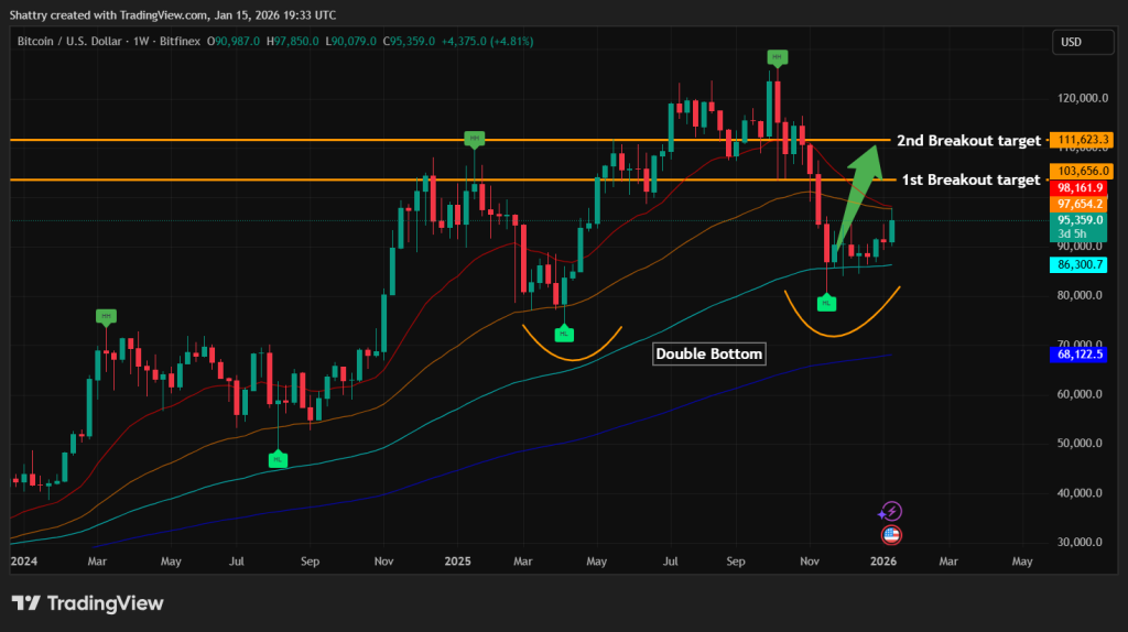 Прогноз ціни на біткойн: тижневий графік показує подвійне дно