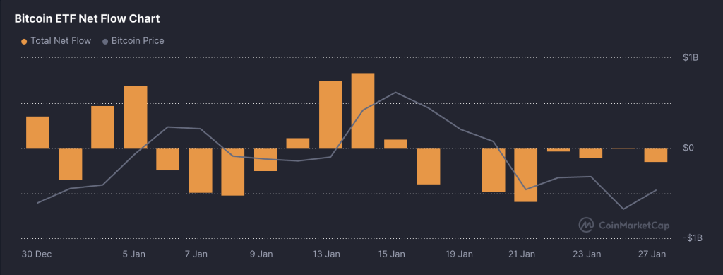 П’ять із останніх шести днів були негативними для потоків Bitcoin ETF. Лише за останні 7 днів біткойн-ETF залишили 480 мільйонів доларів.