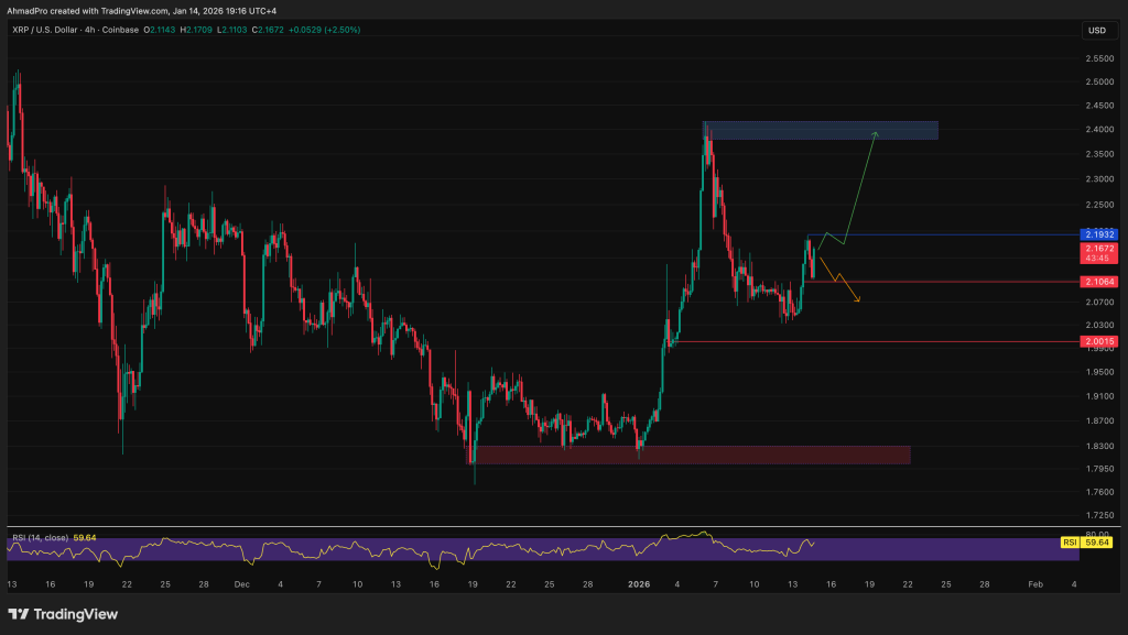 Ціна XRP рухається до зони $2,50, яка є основною зоною опору з листопада. Цей крок, ймовірно, відбудеться лише в тому випадку, якщо діаграмі XRP вдасться пробити й утриматися вище безпосереднього опору на рівні 2,20 долара.
