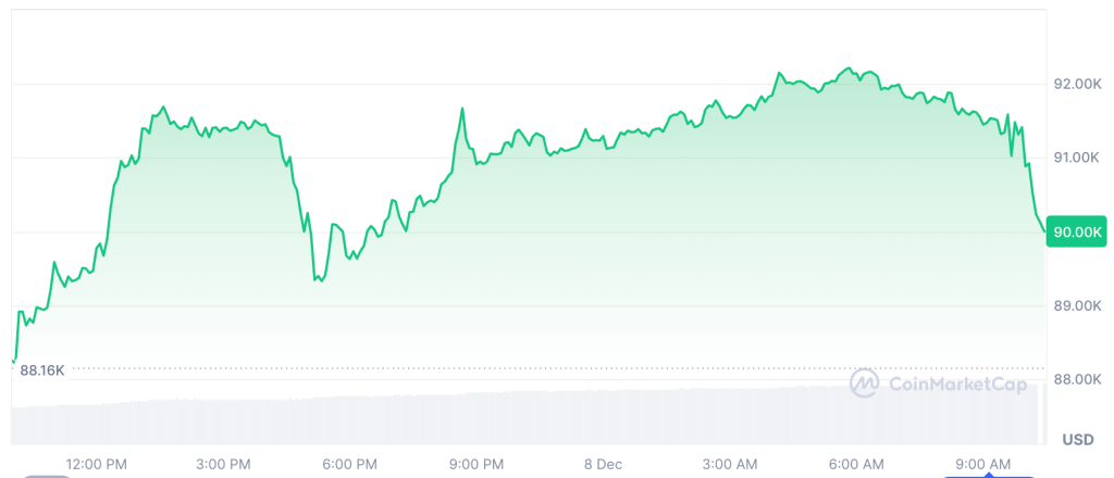 Зараз біткойн торгується близько 90 000 доларів із зростанням приблизно на 1% за 24 години, і цей крок трохи послабив тиск, який визначені останні сесії.