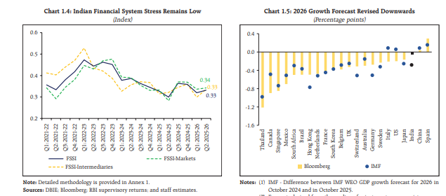 Власна фінансова система Індії, за словами RBI, залишається стійкою, незважаючи на глобальну невизначеність. Економічне зростання продовжує залежати від внутрішнього попиту, інфляція зменшилася, а банки добре капіталізовані з низьким рівнем проблемних кредитів.